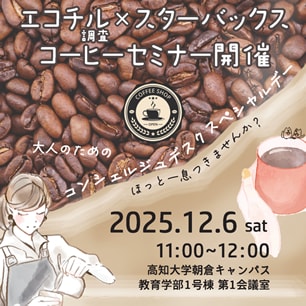 このたび、こうちエコチル調査では調査に参加してくださっている保護者のみなさまに「家事や子育て、お仕事となかなか自分の時間も取れない毎日の中で美味しいコーヒーを飲みながら少しでもほっと一息ついてもらいたい」という思いと感謝の気持ちを込めて、13歳以降調査に継続参加して下さる参加者さん限定で、コーヒーセミナーを開催する事となりました。